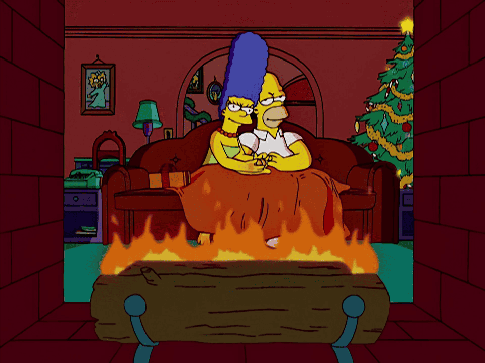 „Eine Ausgabe des „The Springfield Shopper“ erscheint mit der Schlagzeile „COUCH GAG THRILLS NATION“ und einem Schwarz-Weiß-Foto der bereits sitzenden Simpsons.“