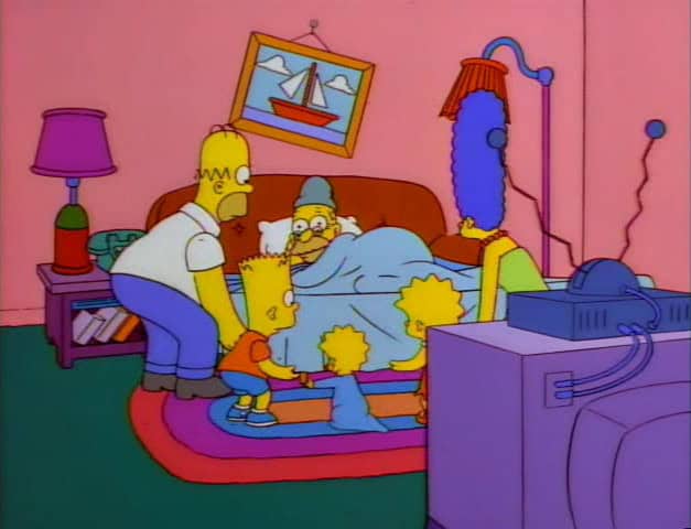 „Die Familie findet Opa schlafend auf der Couch, die mit einem Klappbett ausgestattet ist. Sie klappen das Bett hoch, ignorieren Opas „Hä?“ und setzen sich wie gewohnt hin.“